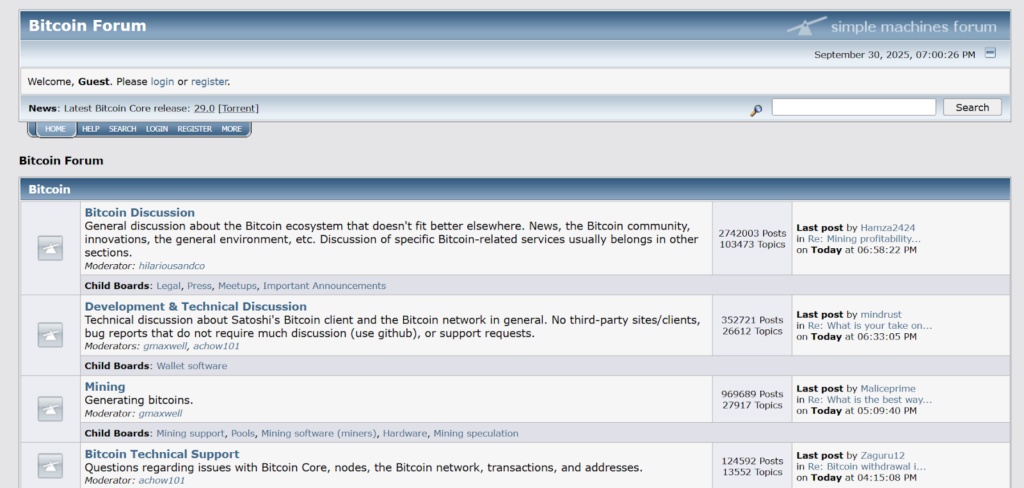 Bitcointalk hosted Satoshi’s original posts and early Bitcoin proposals. Many early wallets, mining pools, and exchanges were beta-tested through user feedback on these forums.