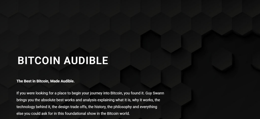Host(s): Bitcoin Audible is hosted by Guy Swann, known as “the guy who has read more about Bitcoin than anyone else.” Guy distills thousands of hours of Bitcoin literature into engaging audio content.