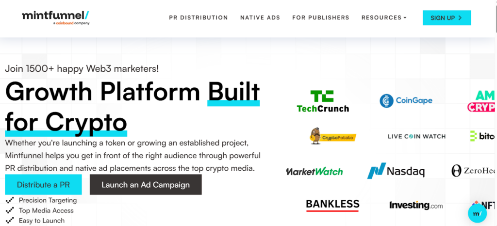 Best for: Web3 startups, token launches, and projects needing crypto‑specific reach without enterprise‑level pricing.