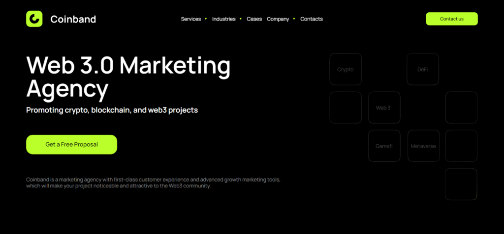| Coinband | Community management, influencer marketing, paid ads, PR, SEO, website development, and token launch support | 250+ verified KOLs, sold-out IDOs, 50x ROI campaigns, rapid community growth, full-stack execution | GameFi & NFT projects, crypto startups, Web3 platforms launching tokens or scaling visibility | Warszawa, Poland |
