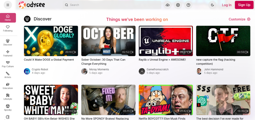 Users earn LBC (LBRY Credits) for watching, sharing, and uploading videos. Odysee emphasizes free speech and content ownership, making it popular among creators who have faced demonetization or restrictions on mainstream platforms.
