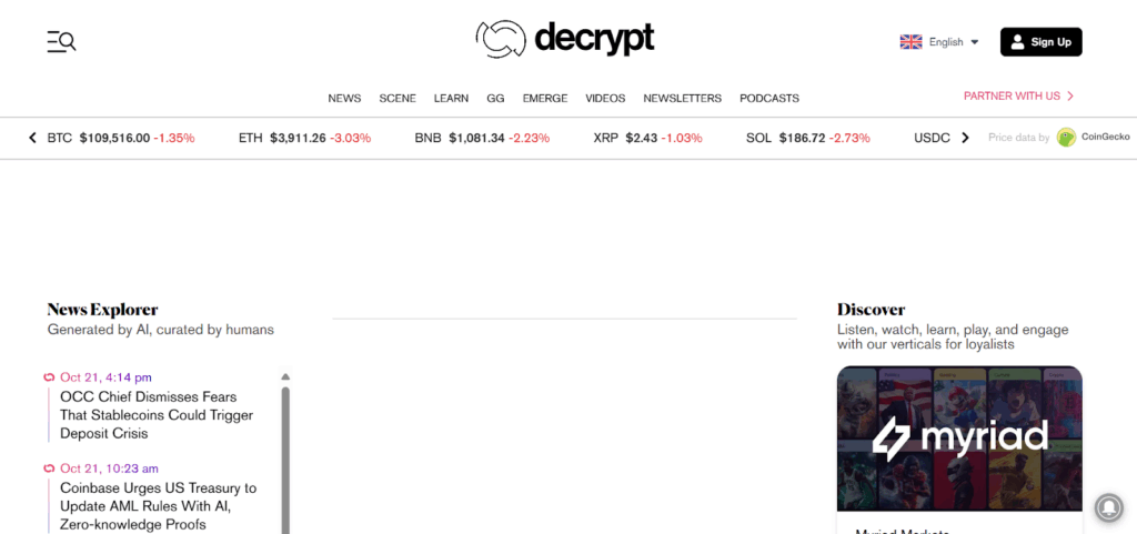 Decrypt is known for clear, jargon-free reporting and strong editorial independence. It helps bridge Web3 with mainstream tech and culture, targeting a global audience focused on education and innovation. Its strengths include;