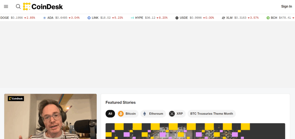 CoinDesk is known for rigorous journalism and industry-leading editorial standards. It offers a deep coverage of financial markets, regulation, and enterprise blockchain, and has a global audience with premium data products and events like Consensus. Its strengths include;