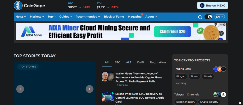CoinGape takes a transparent editorial approach, clearly labeling content and prioritizing accuracy. It has a strong emphasis on market trends, altcoin coverage, and regional crypto developments, with over 500K+ social media followers. Its strengths include;