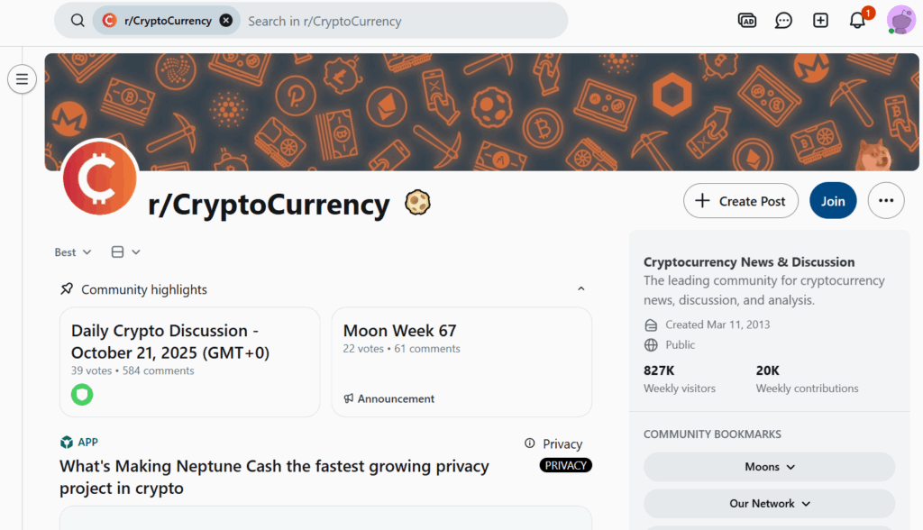 Reddit isn’t a traditional crypto news site. It is a massive social platform where communities (subreddits) like r/CryptoCurrency, r/Bitcoin, and r/Ethereum share news, analysis, memes, and market sentiment in real time. It’s a pulse-check on what the crypto crowd is thinking, trading, and debating.