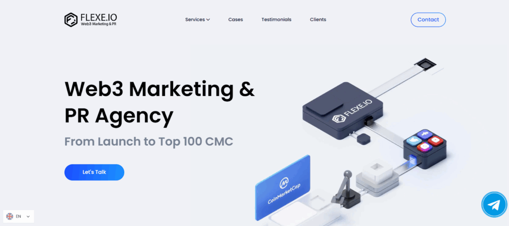 Flexe.io is a PR-first crypto marketing agency holding a large network of media contacts and influencers. The agency has delivered numerous successful campaigns, encompassing press releases, interviews, and influencer collaborations for token launches, NFT drops, and GameFi projects. Flexe.io works well for projects that prioritize reputation, media coverage, and modular service over full-stack development.