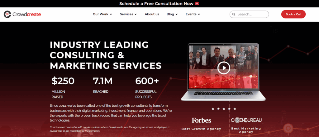 Crowdcreate is a Web3 marketing and investor outreach agency that creates hype for projects using influencer and community networks. The agency has a proven track record of launching successful, high-visibility campaigns and events to attract investors for token sales. Crowdcreate is recommended for projects seeking to rapidly scale awareness through the influencer and investor ecosystems.