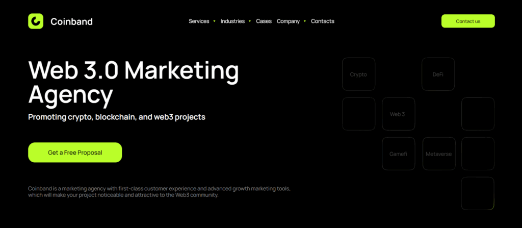 | Coinband | Growth and data-driven marketing across regions | Fast scaling, ROI focused, performance tracking | Startups or early-stage ICOs that need traction and measurable metrics |