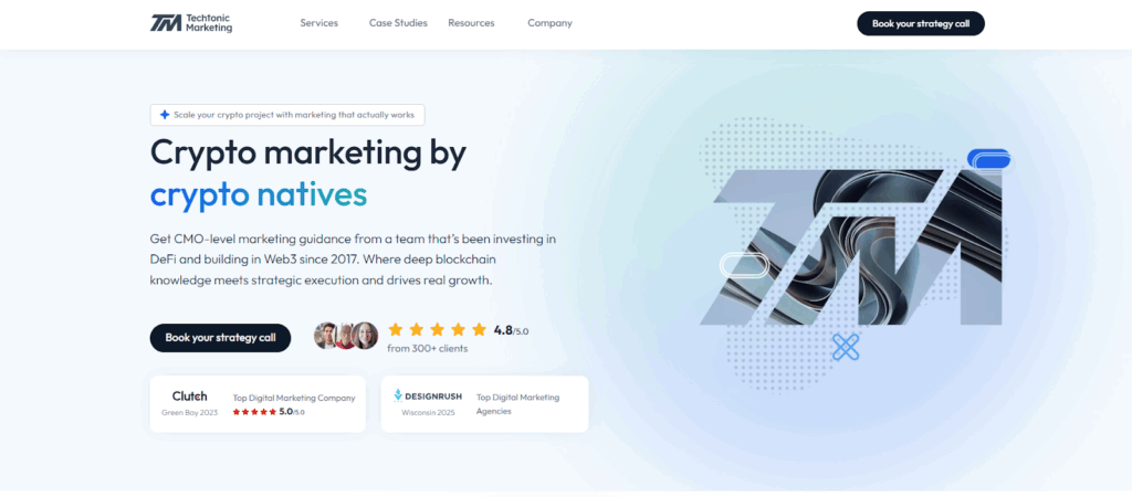 | Techtonic Marketing | Content marketing, SEO, paid ads, CRO services, fractional CMO, and social media marketing | Strong blockchain knowledge with marketing execution, strong content, and creative, compliance-aware execution | Projects looking for scalable growth and strong brand positioning |