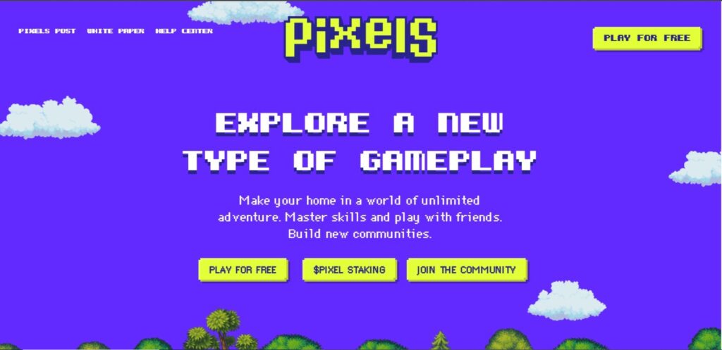 It features daily quests, resource trades, and rewards in $PIXELS tokens.
