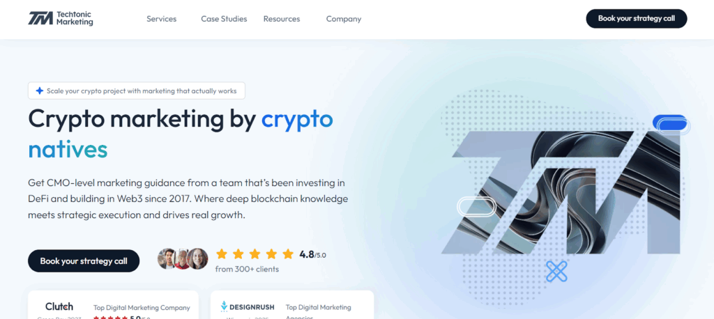 An overview of the agency: Techtonic Marketing is a Web3 and crypto marketing partner that focuses on building trust through transparency, data-driven content, strong SEO, strategic media outreach, and narrative development.