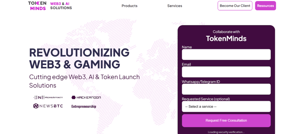 An overview of the agency: TokenMinds provides comprehensive technical and marketing support, spanning from Web3 and blockchain development to token launch services, PR, community building, influencer campaigns, and advertising.