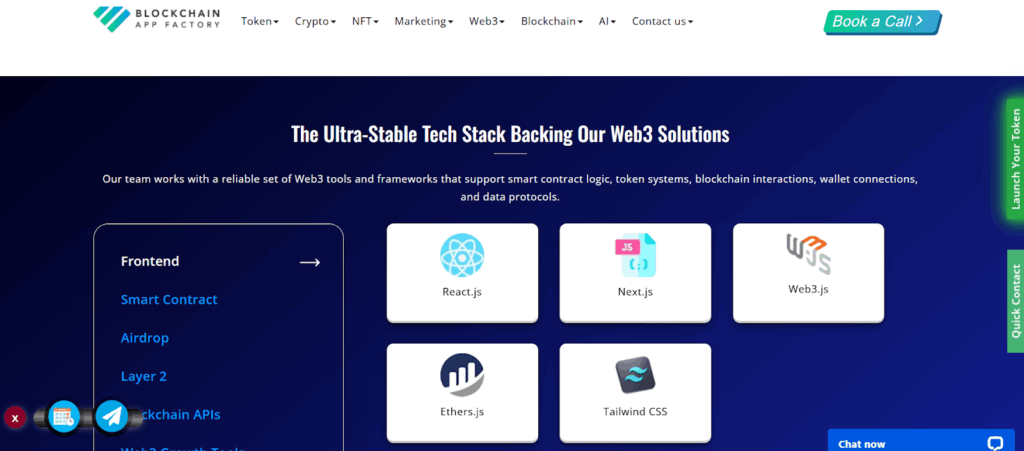 An overview of the agency: It is a hybrid Web3/tech marketing firm that offers DeFi/token development, ICO/IDO/STO launches, smart contract auditing, AI/ML solutions, VR/AR services, and infrastructure development. The agency combines development with marketing support, which is ideal for token projects.