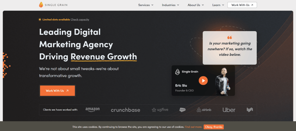 Single GrainLos Angeles, California, USASEO, paid ads, content marketing, conversion rate optimization. Performance creativeBest for startups, ecommerce, and SaaS brands