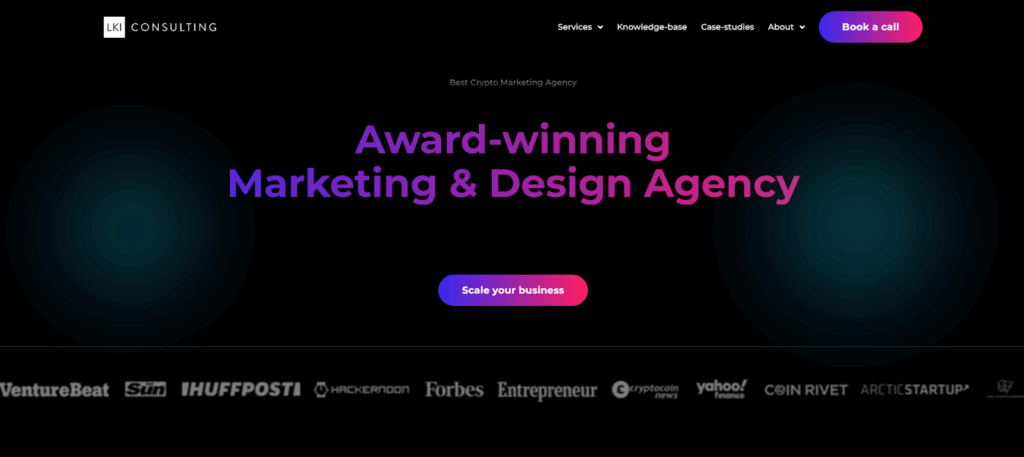 Founded in the UK in 2015, LKI Consulting offers blockchain and crypto marketing services with a strong focus on infrastructure-level growth. The agency helps fast-paced projects scale strategically through token launch marketing, influencer outreach, community management, and design-driven messaging.