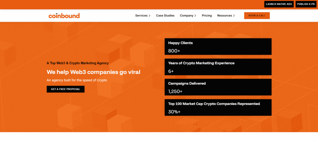Coinbound is a New York-based Web3 marketing firm, established in 2018. The agency specializes in PR, influencer marketing, SEO, community growth, paid ads, social media management, branding and design, and even fractional CMO services.