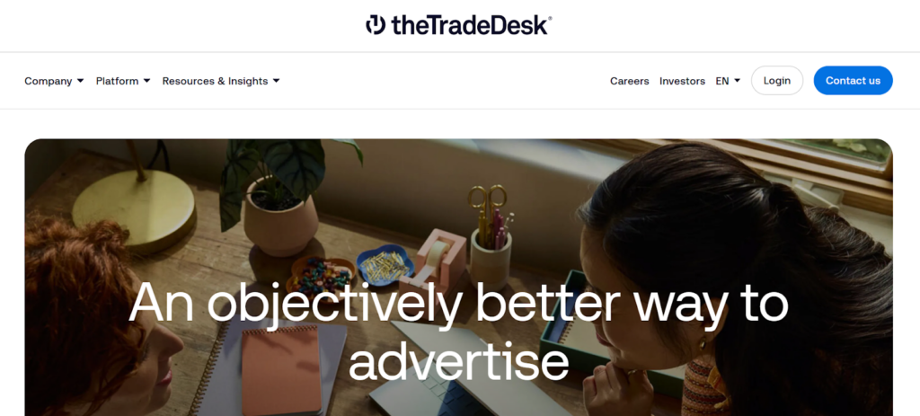 The Trade Desk is one of the most widely recognized DSPs, known for its transparency, advanced data integrations, and global reach. It empowers advertisers to manage campaigns across display, video, audio, and connected TV. Its key features & capabilities include: