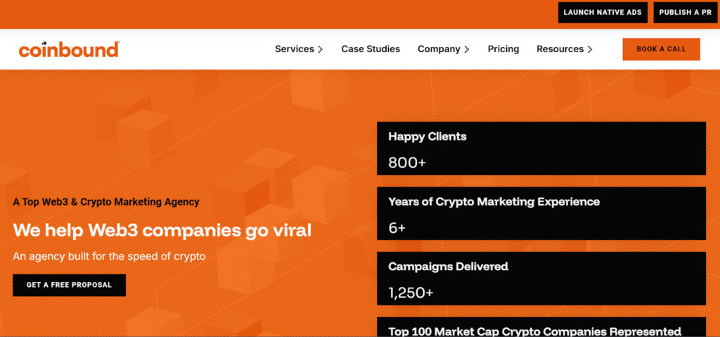 Their services encompass Google Ads, influencer marketing, community building, SEO, and crypto PR. Coinbound actively collaborates with the DeFi, NFT marketplaces, staking services, and crypto exchanges industries. Their prominent customers include MetaMask, eToro, Nexo, and CoinStats.